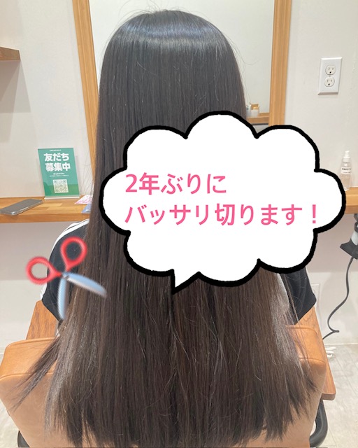ばっさり切りたくなったけど、どこで切ろう?となったらしいのですが、お母さまが当店を探して予約していただいたらしいです。