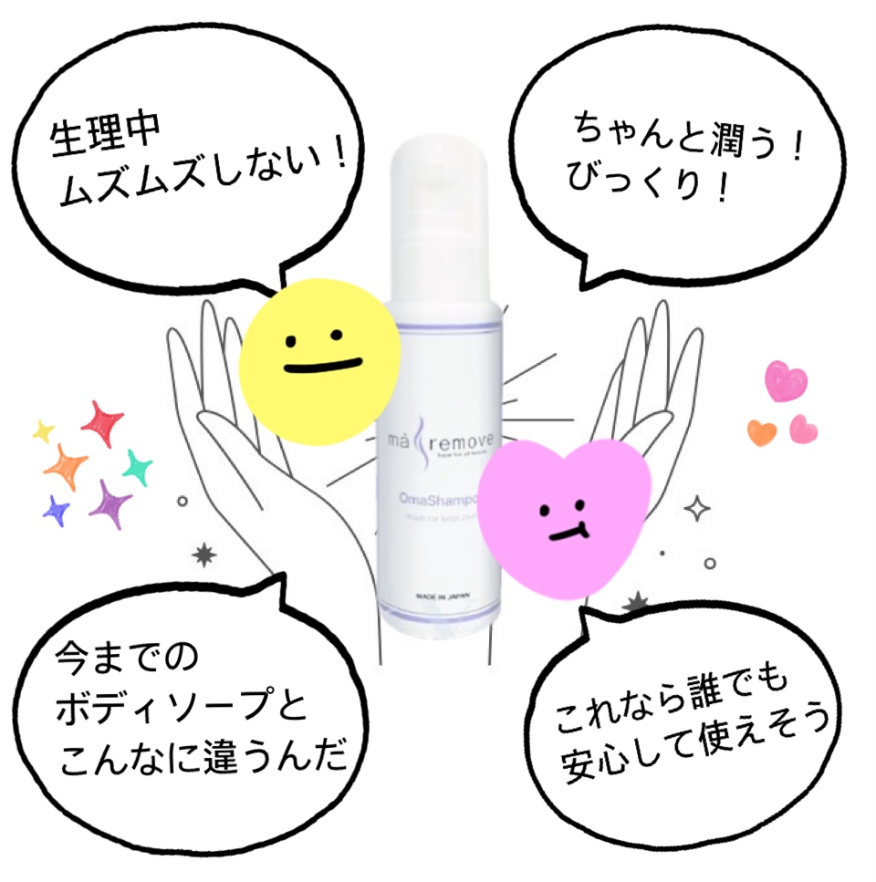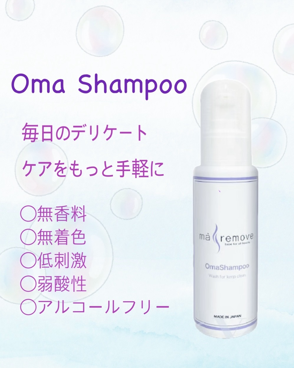 こちらのマ・リムーブOma shampooは、厳選した20種類以上の植物成分で上記の通り優しく仕上げたデリケートゾーンシャンプーです。