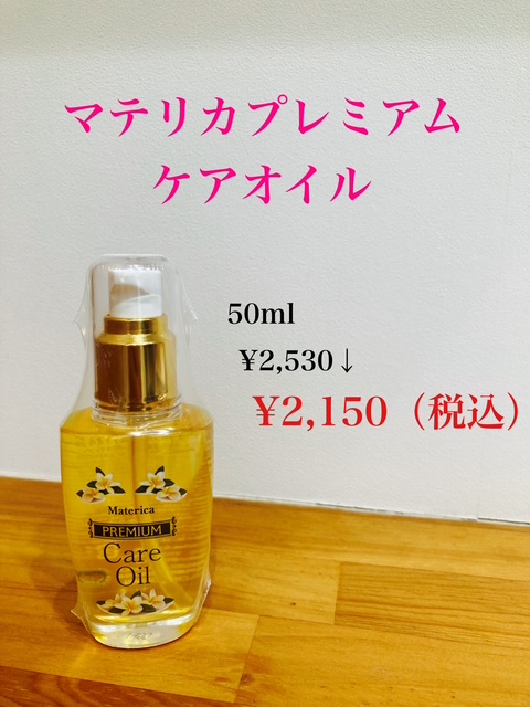 マテリカ独自開発のこのヘアオイルは髪の毛、頭皮、オールマイティーにケアできるものを。